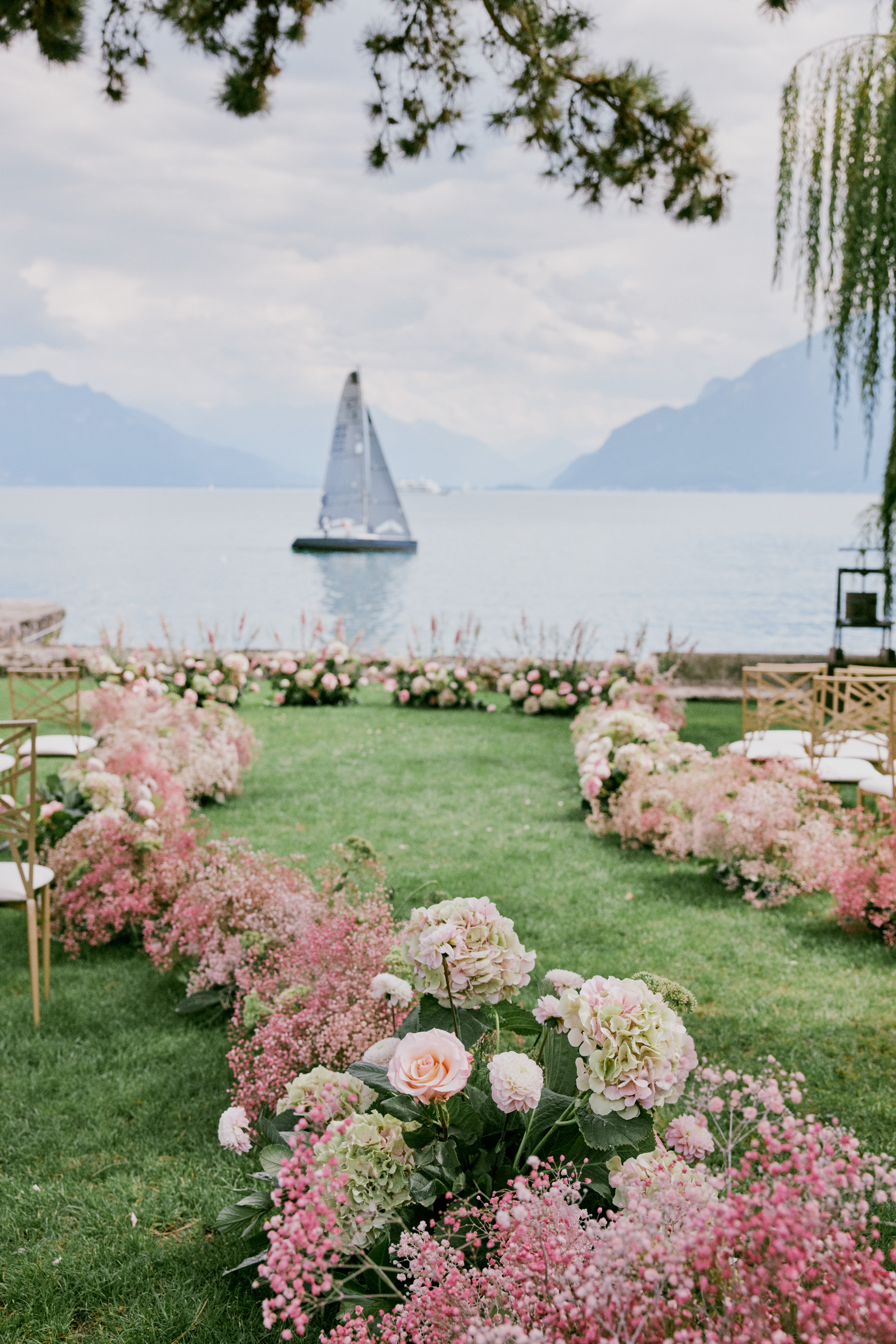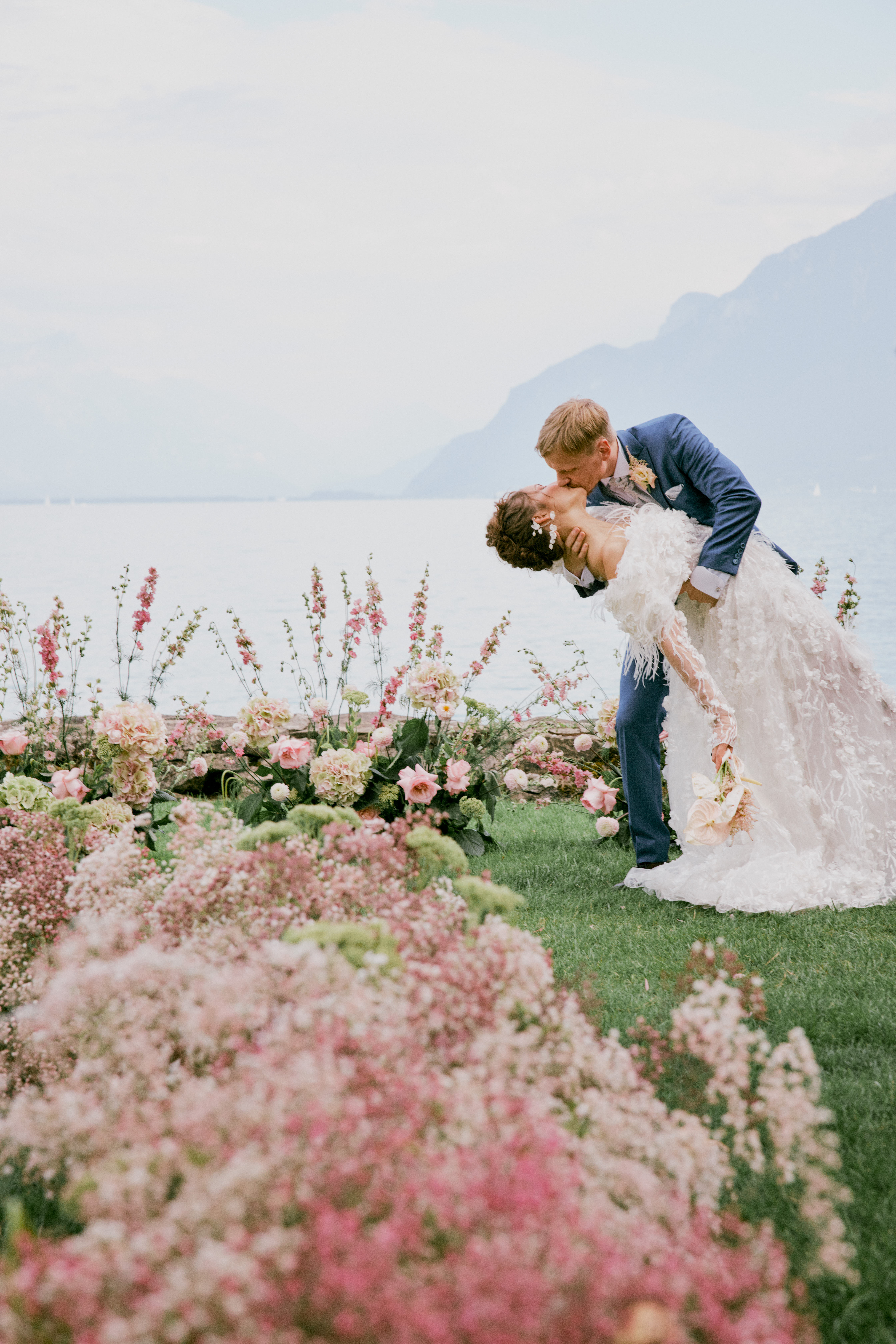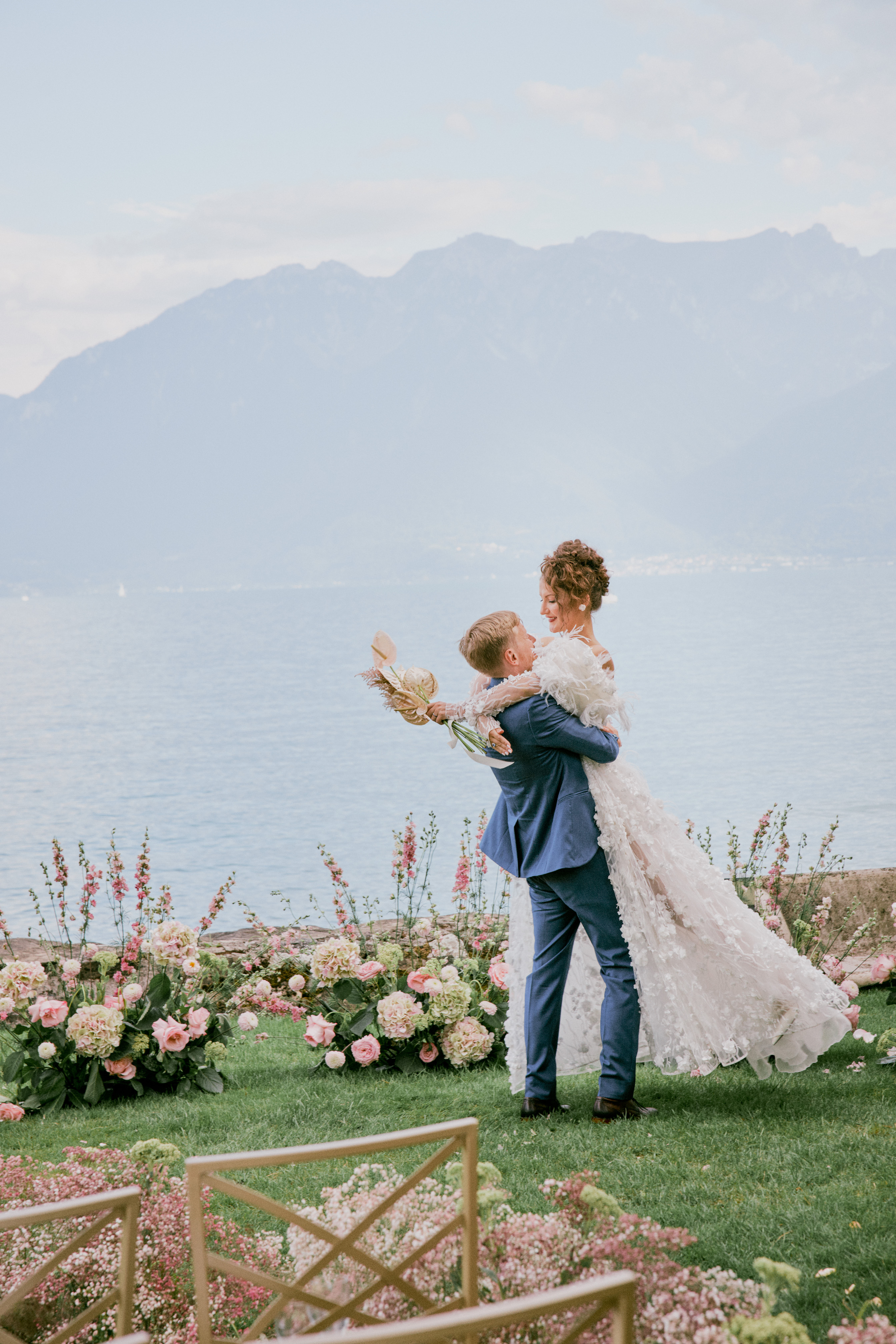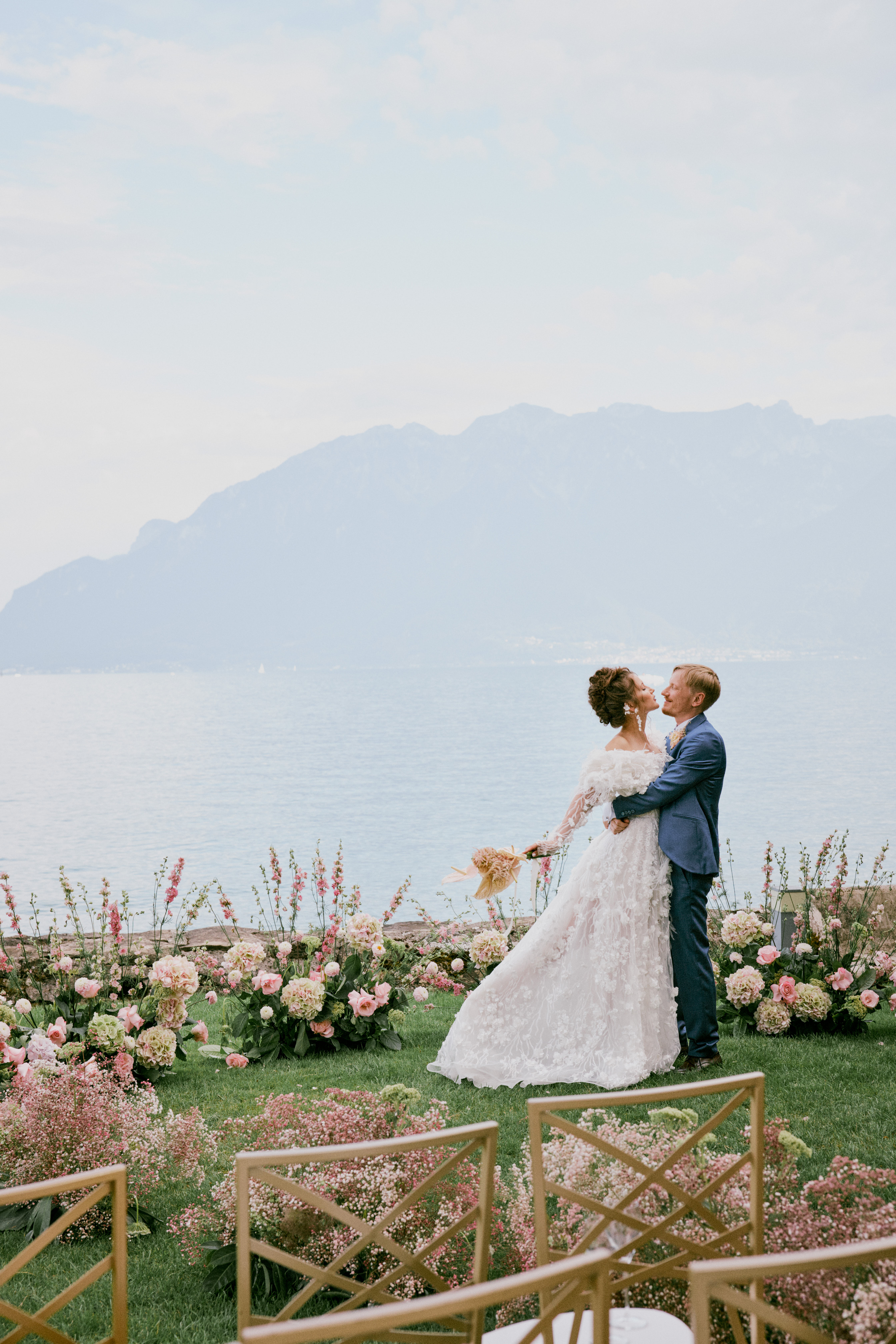 Daria and Yurii was one of our first big projects where we could unleash our creative side thanks to Daria (the bride) being also a super talented artist! Living in Switzerland they really wanted to celebrate not far from their home, but also embracing the beauty of Lake Leman, Alpes and Lavaux vineyards. They have chosen the lawn of the Chateau located right on the shore to benefit from this rare opportunity of having only the water and the mountains as their natural backdrop. It was an intimate wedding with close friends and family but with extraordinary energy!