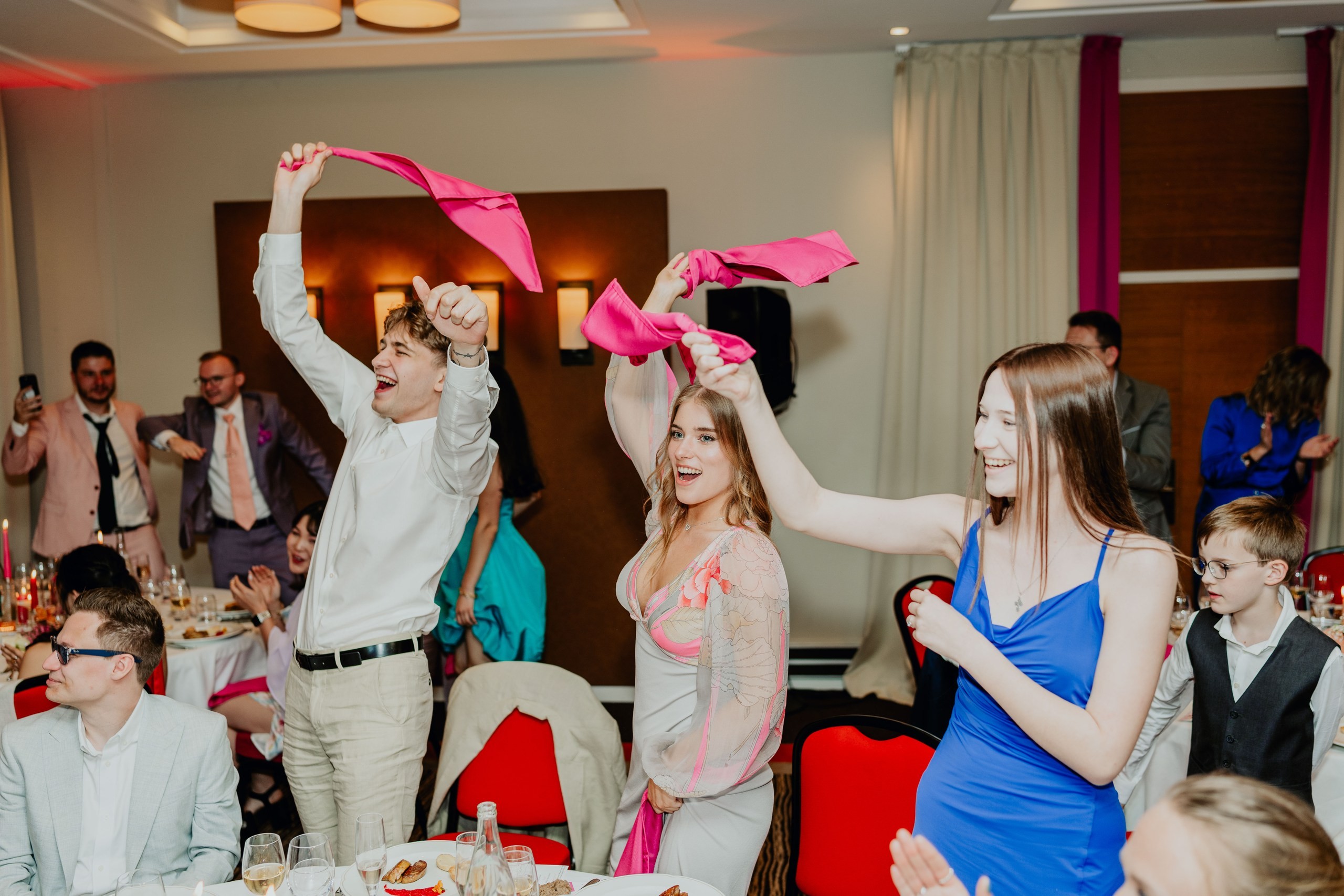 Fleur and Fedor decided to involve us into their planing when they realised that they do not have nor time neither energy to deal with numerous preparational tasks and totally trusted us with creation of their celebration! The focus was to add a bit more color to the stricter room that they have chosen before and to put together entertaining and festive programme with animation and music to rock the night! Happy to say - we have delivered :)
