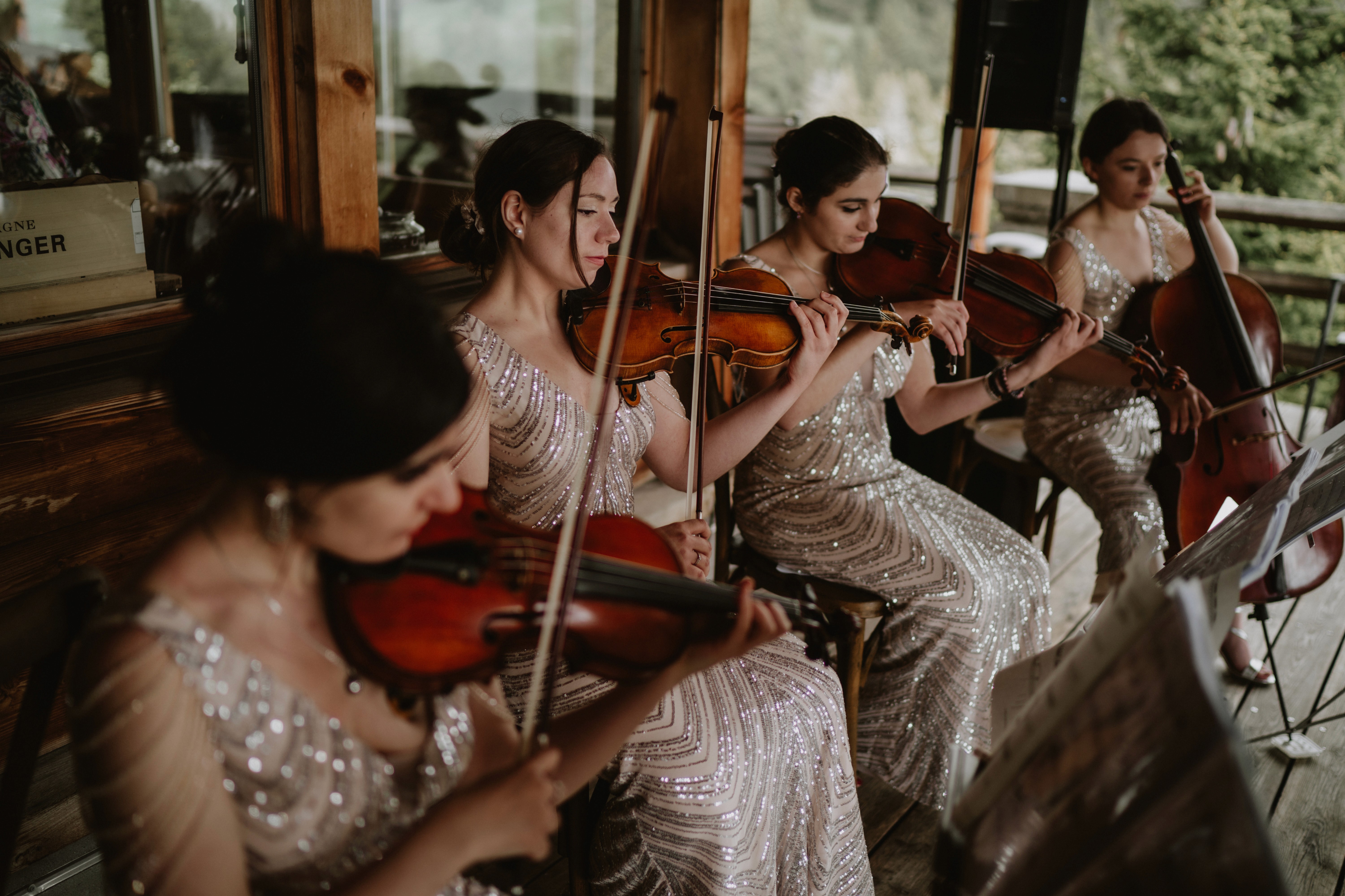 We really wanted to do something fun and different for the bride’s entry, so Helen came in a golf car driven by her father! Ceremony took place on a lawn with an amazing view on the Alps that left everyone speechless, and we were so lucky with the weather.