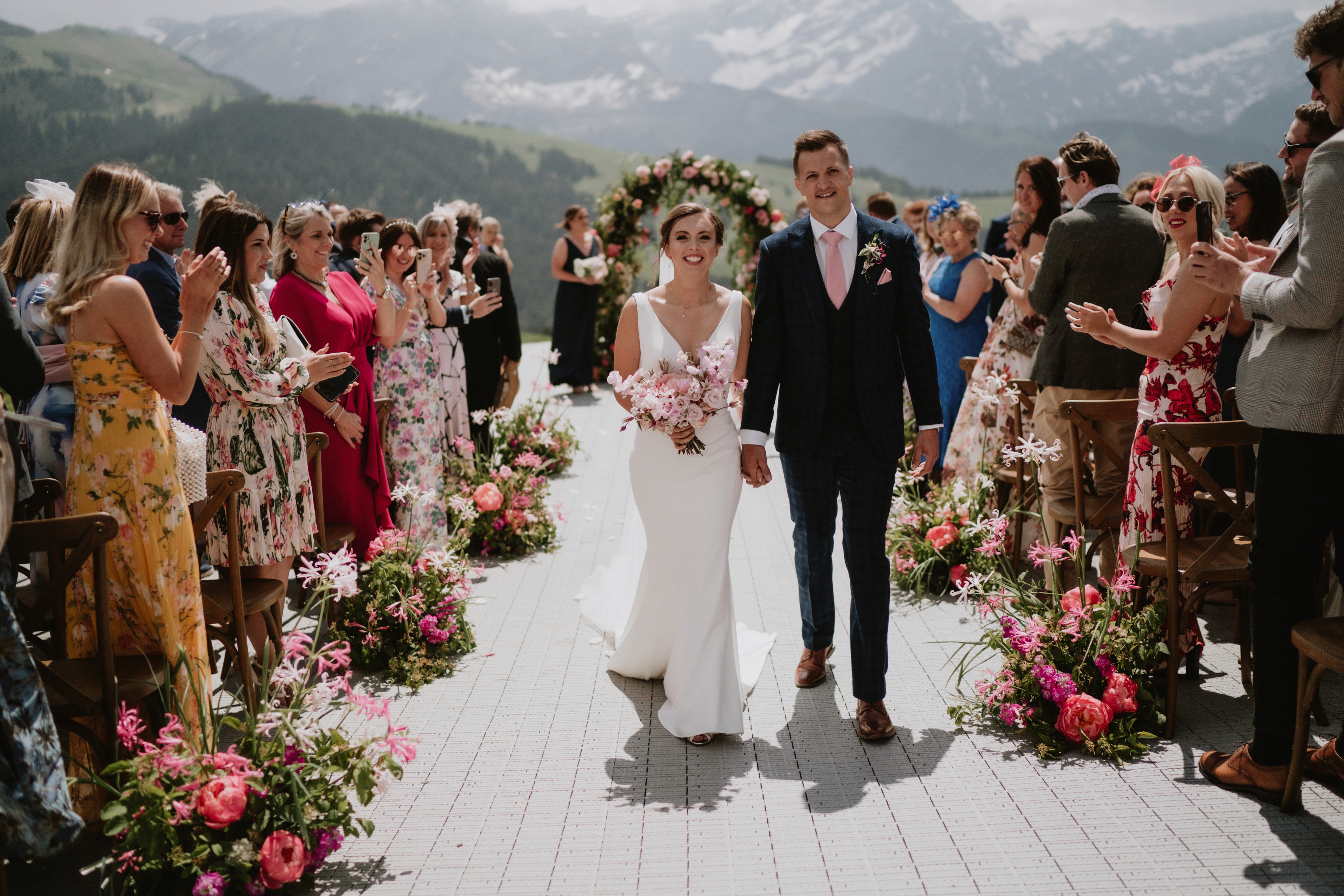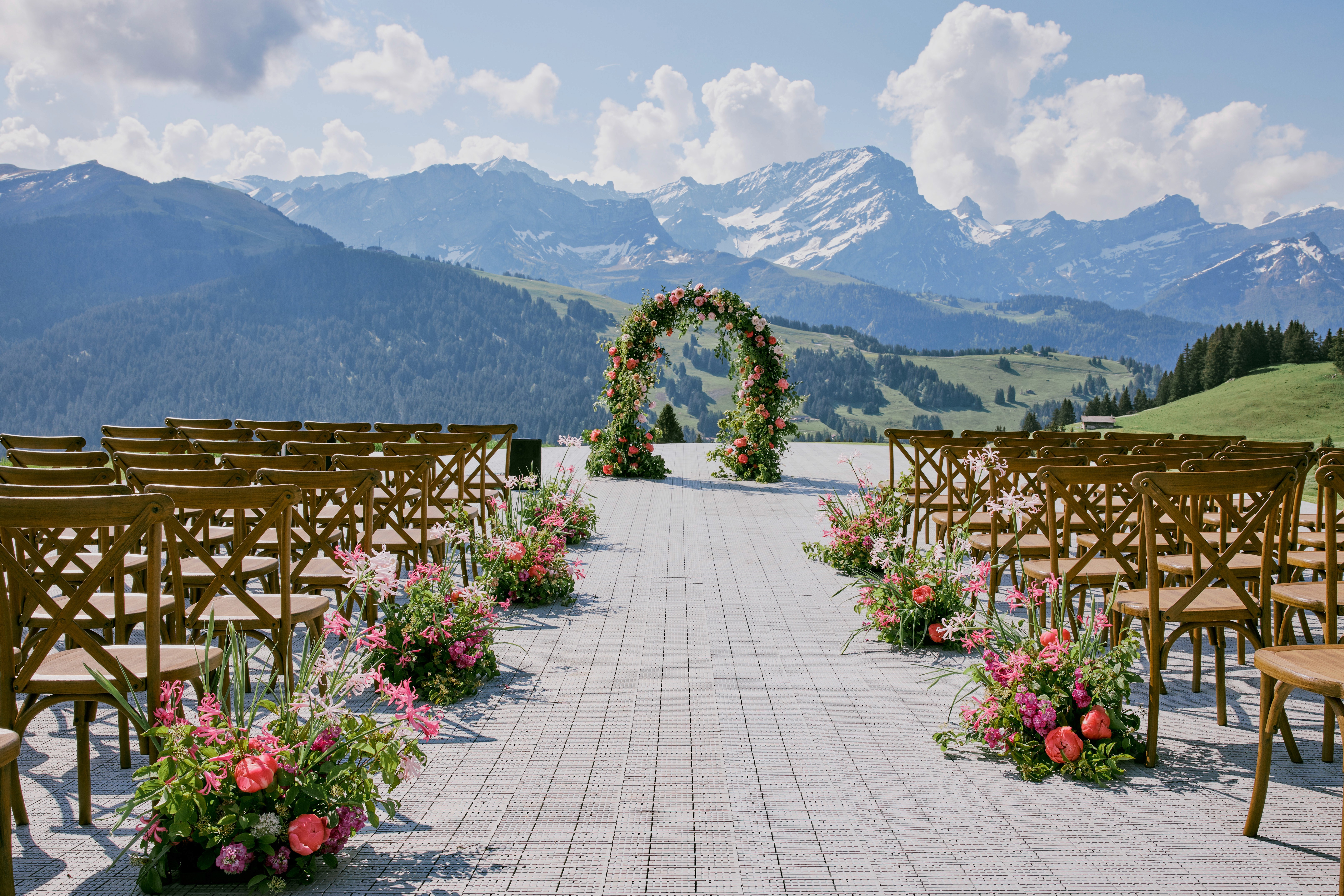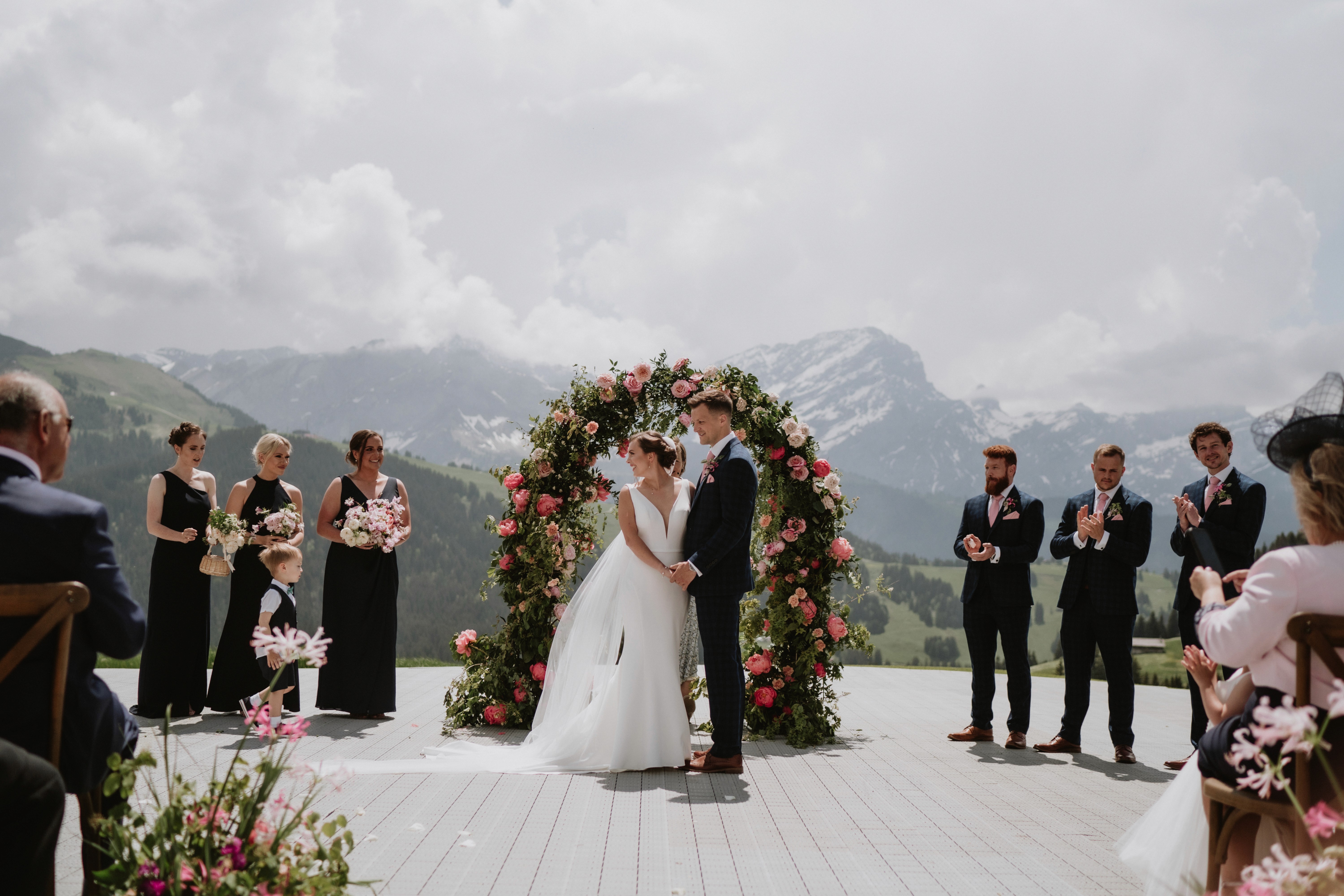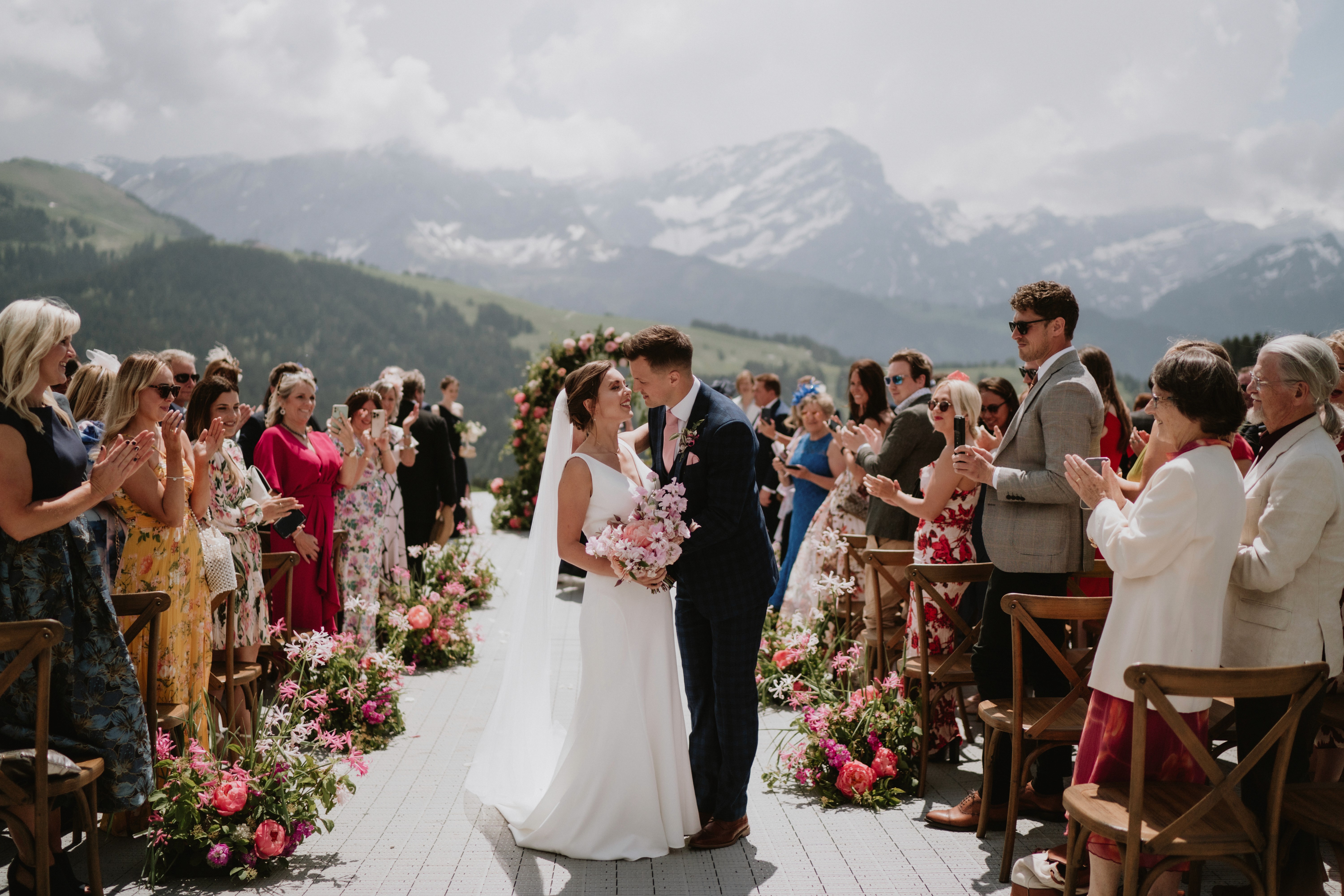 Villars was always a special place for Helen as this is where she went to boarding school and Dale supported her in the idea of celebrating their wedding right in the Swiss Alps and bringing all their friends and family to see this beauty. Since the celebration was on a mountain golf resort we had to get all the guests up there by the special train and golf cars!